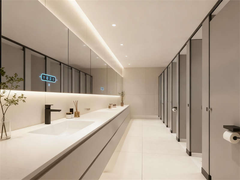 會議室設計兼顧功能性與氛圍感,簡潔的陳設搭配適宜的燈光,滿足不同規模會議的需求,助力團隊高效溝通;休閑茶水間以溫馨舒適為基調,柔軟的座椅與綠植點綴其間,為員工提供放松休憩的角落,緩解工作壓力;走廊通道線條流暢,通過墻面裝飾與燈光設計增強空間層次感,引導人流順暢通行;衛生間注重整潔與便捷,細節處的設計彰顯對使用者的關懷。?