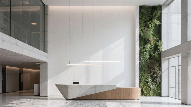 室內設計延續外觀的簡約風格,同時根據不同功能區域進行差異化打造。大堂區域以開闊的空間感為主,搭配柔和的燈光與簡約的裝飾元素,給人親切、大氣的第一印象,方便人員進出與短暫停留。辦公區域注重采光與通風,合理規劃工位布局,確保每位使用者都能擁有舒適的工作空間,同時通過簡潔的家具選擇與色彩搭配,減少視覺干擾,幫助人員集中注意力。?