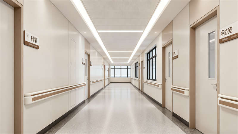 病房裝修以舒適、溫馨為重點(diǎn),色彩選擇溫和雅致,搭配簡潔的家具,營造出類似家庭的氛圍,幫助患者放松心情,更好地恢復(fù)健康。走廊裝修注重采光與通行安全,墻面設(shè)計(jì)簡潔大方,避免復(fù)雜裝飾帶來的壓抑感。護(hù)士站裝修兼顧功能性與美觀性,合理設(shè)置工作區(qū)域,方便醫(yī)護(hù)人員與患者及家屬溝通。?