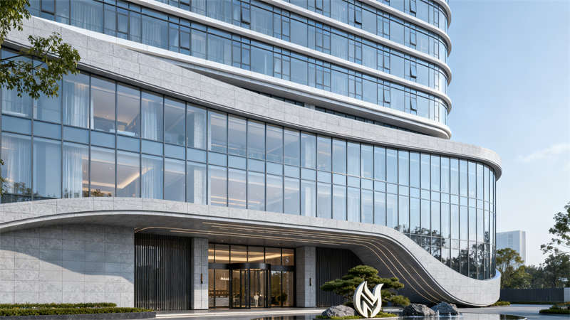 酒店外觀設計簡潔大氣,運用簡潔的線條與和諧的色彩搭配,摒棄繁雜的裝飾,展現出沉穩而不失時尚的氣質,與周邊環境自然融合,同時又能憑借獨特的設計感吸引目光。?