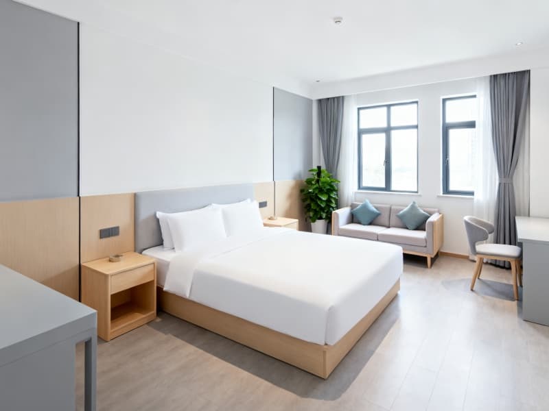 整體設(shè)計既符合現(xiàn)代酒店的簡約審美趨勢,又充分適配客人的居住需求,讓2000平的酒店空間不僅具備完善的功能,更能成為客人短暫停留期間的舒適休憩場所,傳遞輕松、自在的居住氛圍。