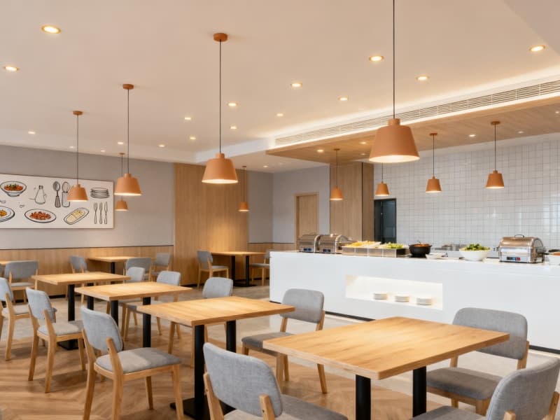 在空間布局上,充分考慮酒店的功能性與實(shí)用性,合理劃分大堂、客房、餐廳、會議等多個區(qū)域,各區(qū)域銜接自然流暢,既保證獨(dú)立的使用空間,又避免空間浪費(fèi)。例如客房注重居住的舒適與便捷,配備必要的家具與設(shè)施,無多余裝飾;餐廳與茶吧的設(shè)置,滿足客人用餐與休閑的需求,豐富居住體驗(yàn)。?