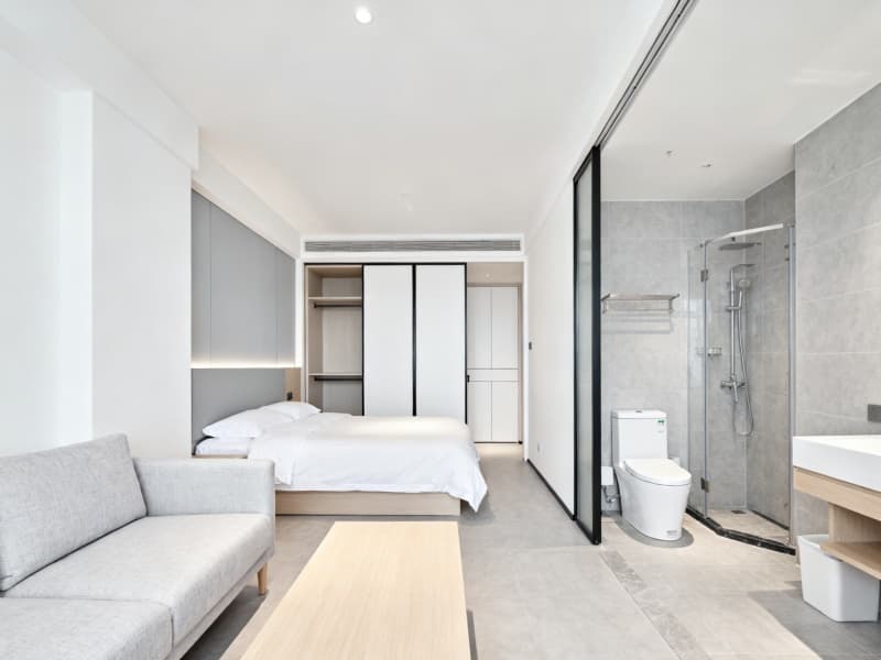 本設(shè)計以簡約風(fēng)格為核心,圍繞2000平酒店的居住與功能需求,打造兼具質(zhì)感與舒適的空間。整體摒棄繁雜的裝飾元素,以淺白、淺灰、淺木色為基礎(chǔ)色調(diào),通過材質(zhì)的質(zhì)感對比與光線的柔和運(yùn)用,傳遞簡約而不冰冷的氛圍,讓客人在簡潔的環(huán)境中獲得放松的居住體驗(yàn)。?