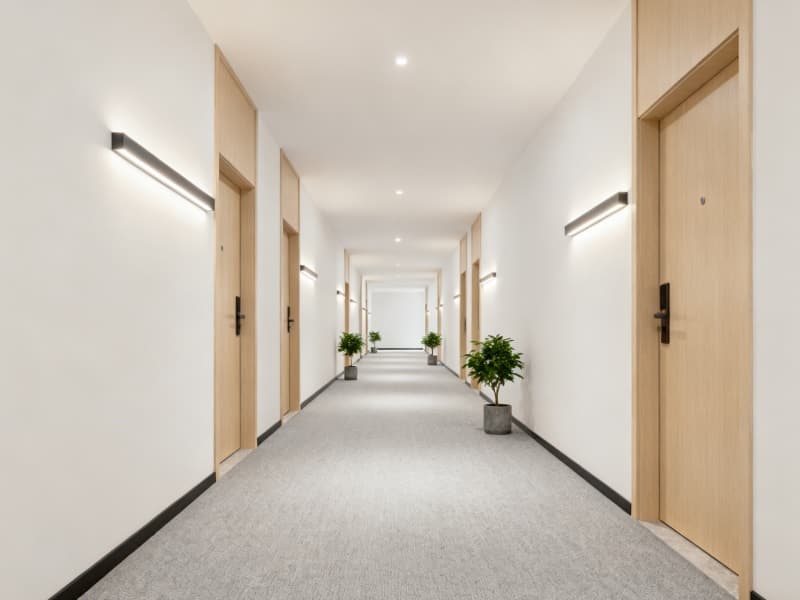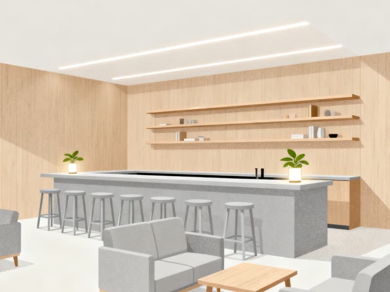 設(shè)計中注重細(xì)節(jié)的把控,從地面材質(zhì)的選擇(如走廊的靜音地毯),到照明的搭配(如茶吧的間接照明),再到綠植的點(diǎn)綴,每一處細(xì)節(jié)都圍繞“簡約舒適”展開。既保證空間的整潔有序,又通過柔軟的材質(zhì)、柔和的光線與自然綠植,為簡約空間注入溫度,避免過度簡約帶來的生硬感。?